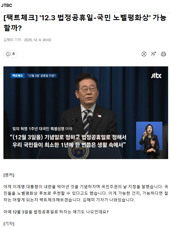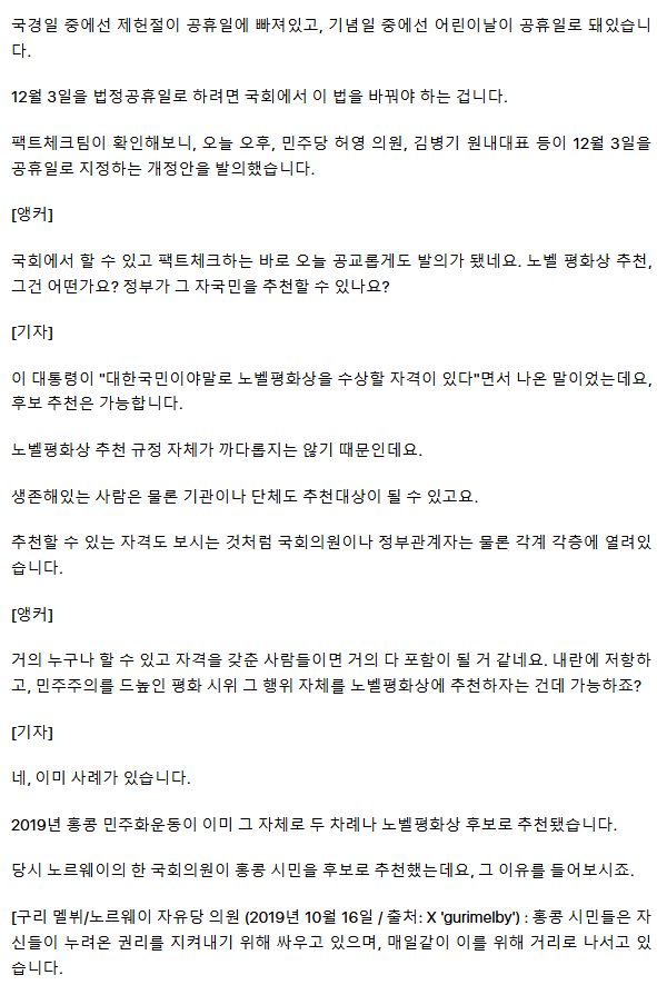 [팩트체크] '12.3 법정공휴일- 국민 노벨평화상' 가능할까?
