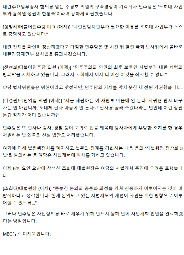 내란전담재판부 위헌논란 관련 민주당의 법사위와 당대표는 책임을 지시라