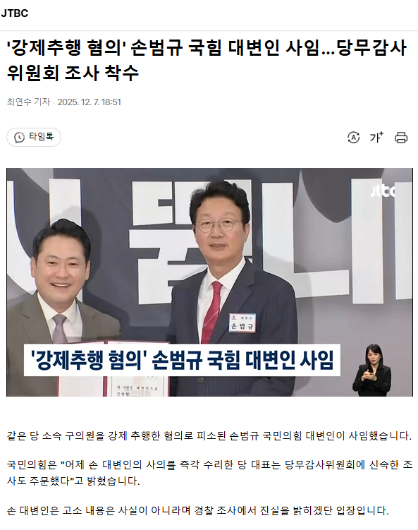 '강제추행 혐의' 손범규 국힘 대변인 사임… 당무감사위원회 조사 착수