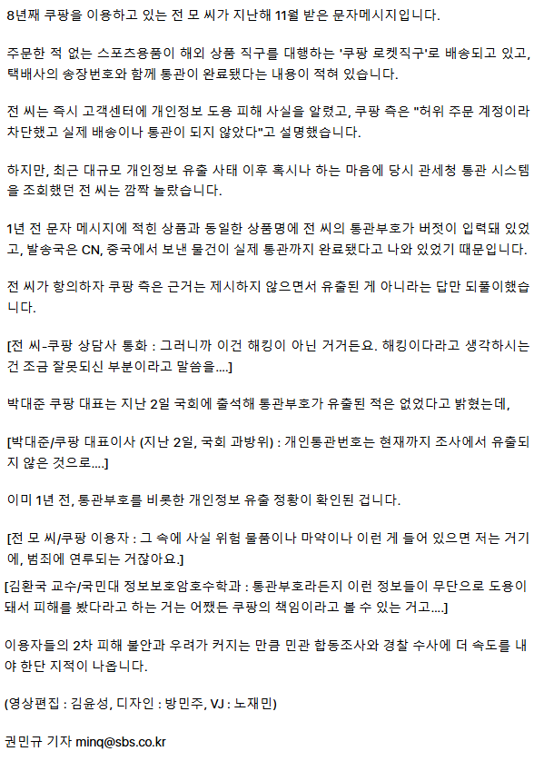 "통관번호 안 털렸다"?… 1년 전 '유출' 있었다