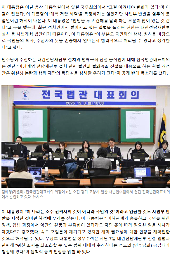이 대통령, '사법개혁' 판사들 공개 반발 다음 날 "이 나라 소수 권력자 것 아냐"