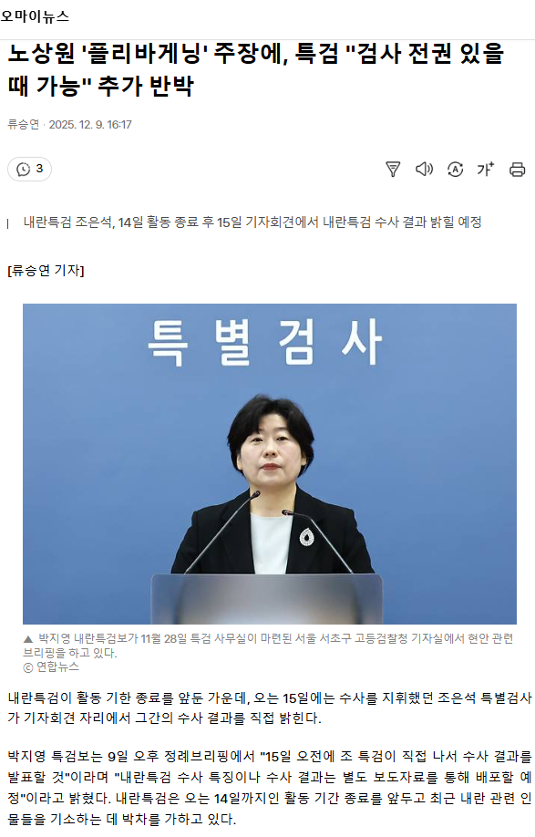 노상원 '플리바게닝' 주장에, 특검 "검사 전권 있을 때 가능" 추가 반박