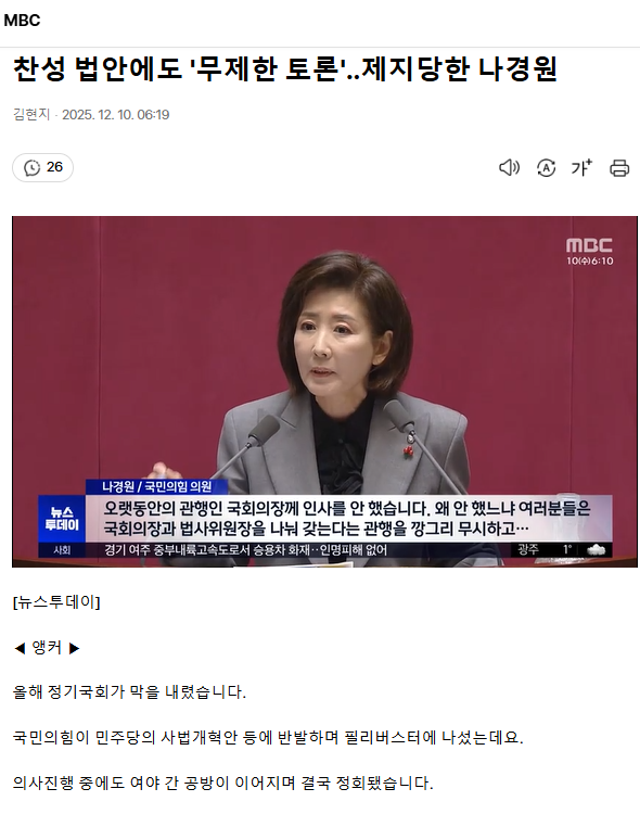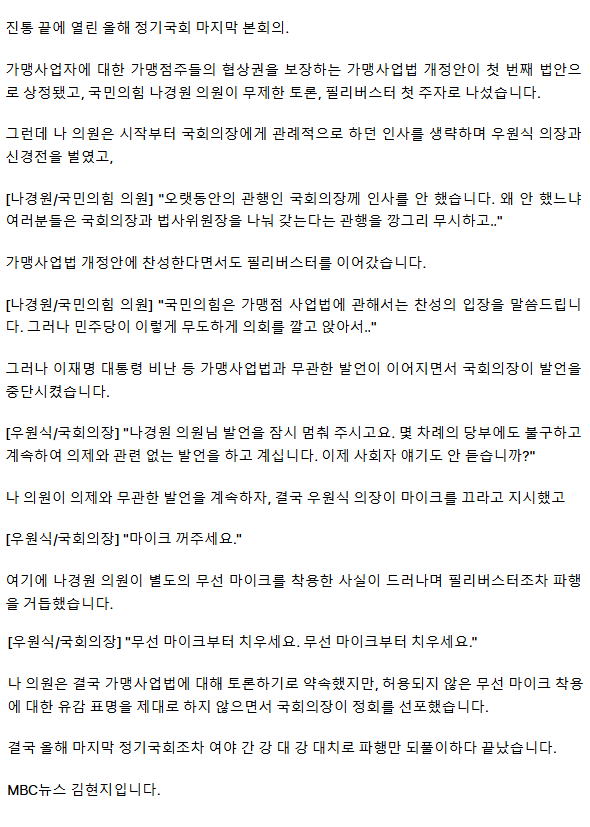 찬성 법안에도 '무제한 토론'‥ 제지당한 나경원 ㅡ 무선마이크 사용이 머야, 벌금형 받으니까 깝치네