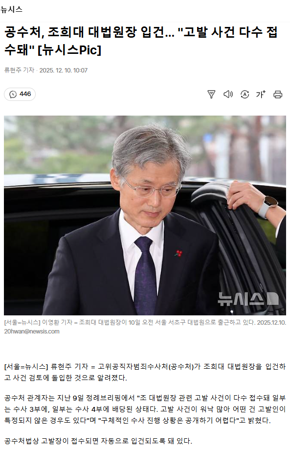 공수처, 조희대 대법원장 입건… "고발 사건 다수 접수돼" [뉴시스Pic]ㅡ 조희대를 구속하라