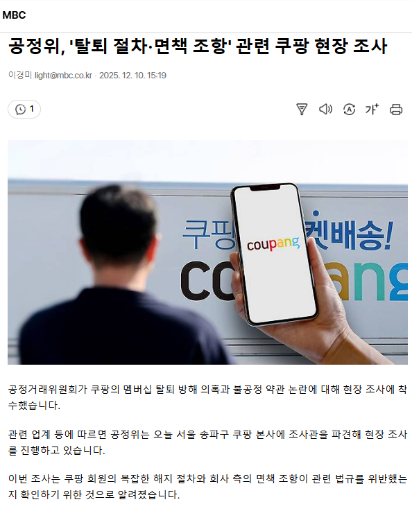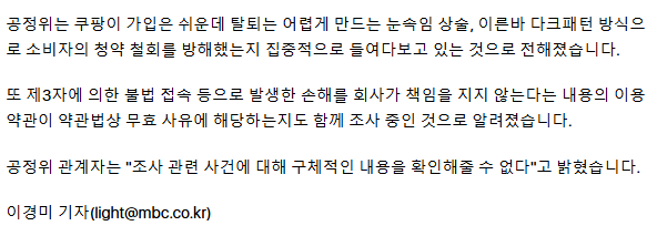 공정위, '탈퇴 절차·면책 조항' 관련 쿠팡 현장 조사