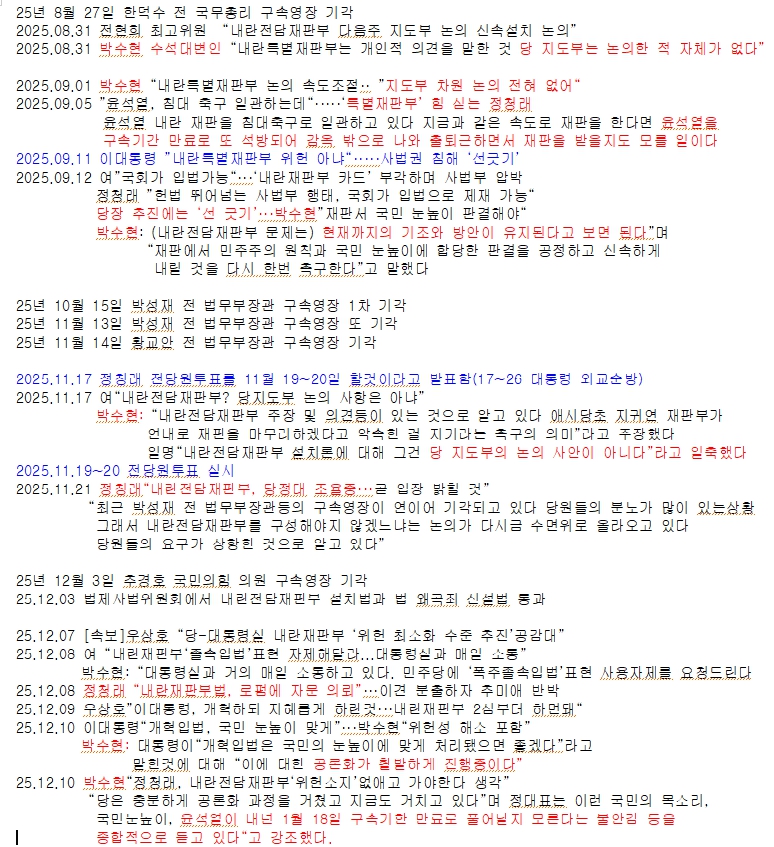 25.12.10 박수현 내란전담재판부 공론화 활발하게 진행중 정청래당대가 윤석열이 내년 1월 18일 구속기간 만료로