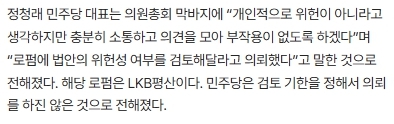 ㅎㅎ 똥청래가 당대표다 보니가 하는 짓이 점점 띨띨이가 되어 가네요. 왜 로펌에게 물어봐요. 국민 뜻이 너무 명확하면 그대로 밀고 나가고, 위헌 소지가 있다면 개헌하면 될 걸~