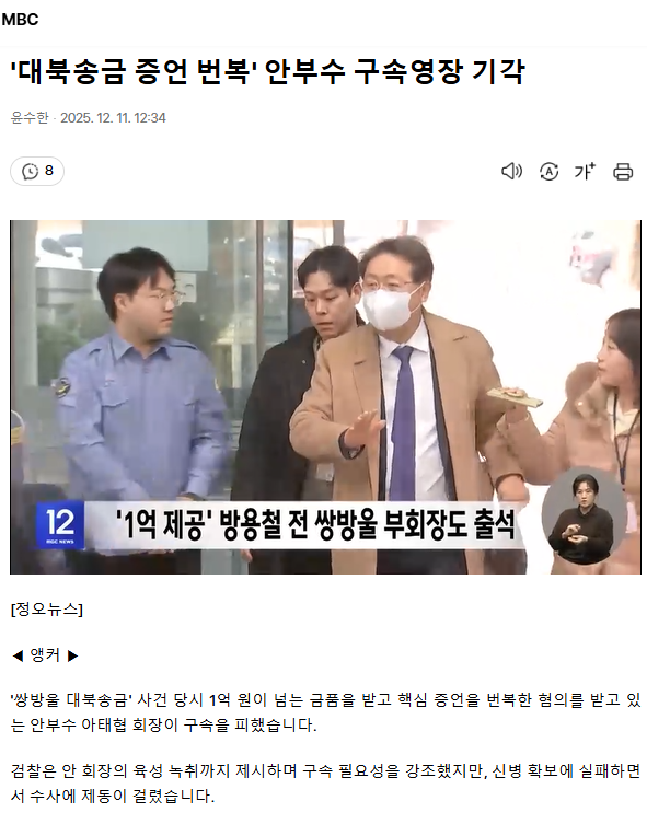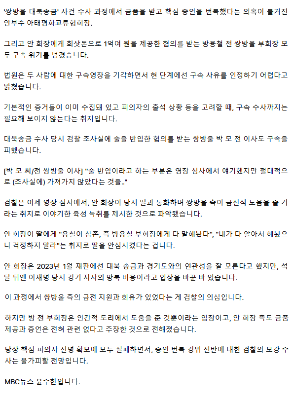 '대북송금 증언 번복' 안부수 구속영장 기각 ㅡ 구속사유와 상당성 인정하기 어려워, 멍멍이판사