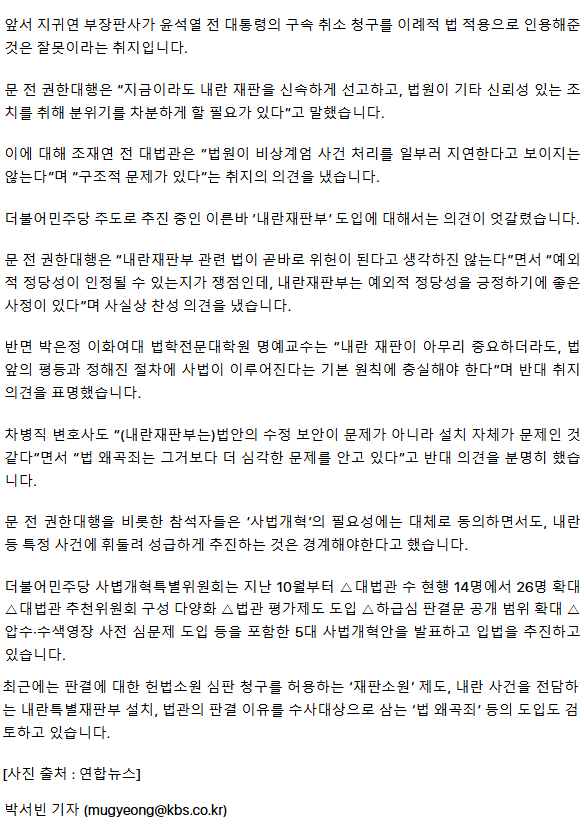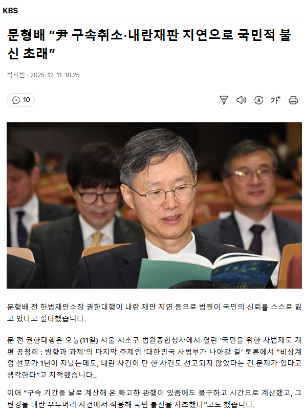 문형배 “尹 구속취소·내란재판 지연으로 국민적 불신 초래”ㅡ 문형배를 대법원장으로 임명 합시다