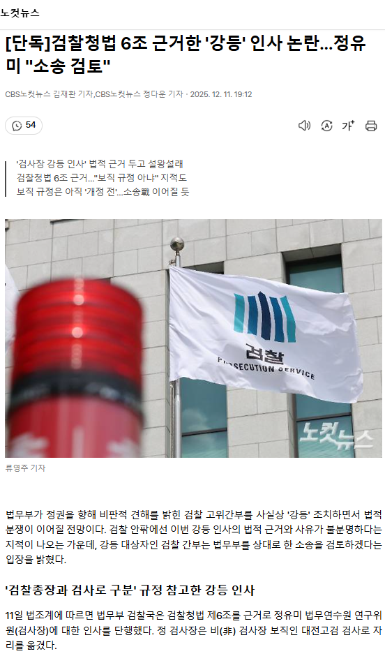 [단독] 검찰청법 6조 근거한 '강등' 인사 논란… 정유미 "소송 검토" ㅡ 말귀를 못알아 듣네