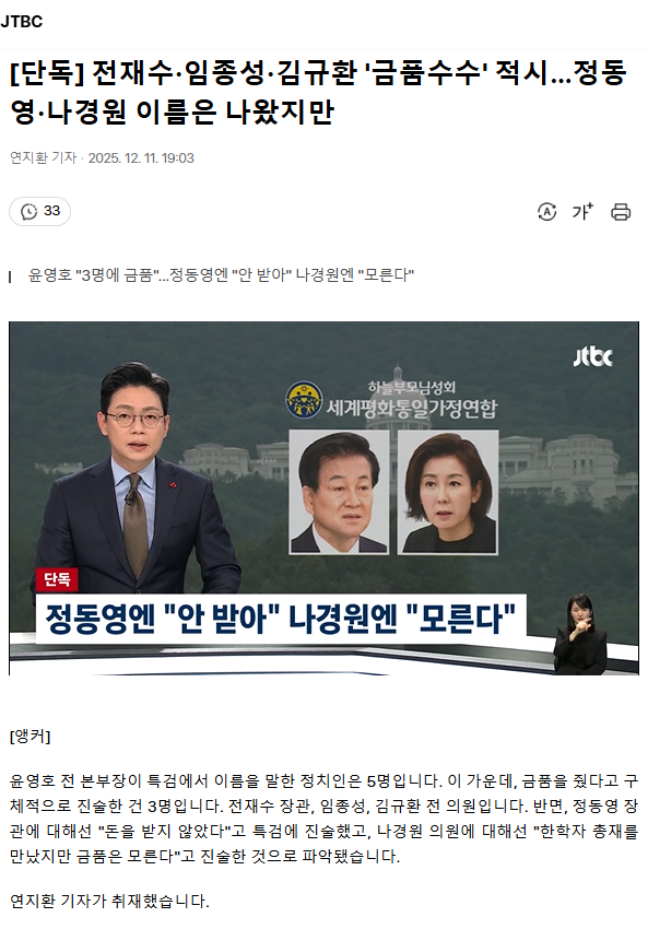 [단독] 전재수·임종성·김규환 '금품수수' 적시… 정동영·나경원 이름은 나왔지만
