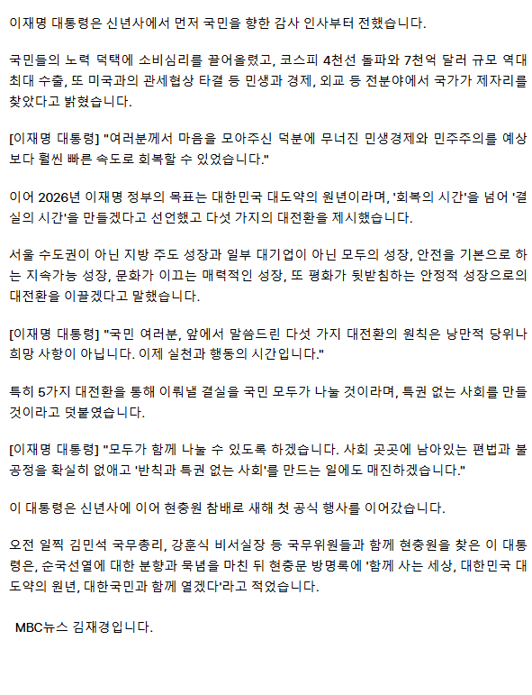 이 대통령 "대도약 원년으로"‥ 5대 대전환 제시