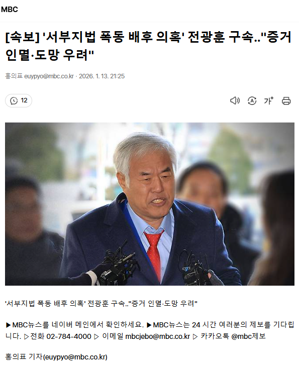 [속보] '서부지법 폭동 배후 의혹' 전광훈 구속‥ "증거 인멸·도망 우려"
