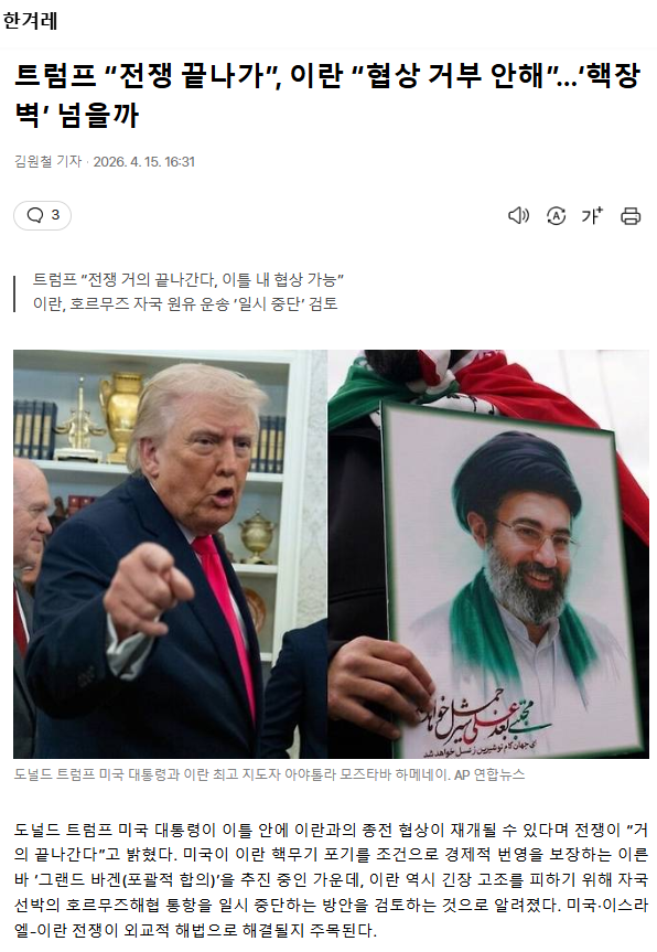 트럼프 “전쟁 끝나가”, 이란 “협상 거부 안해”… ‘핵장벽’ 넘을까