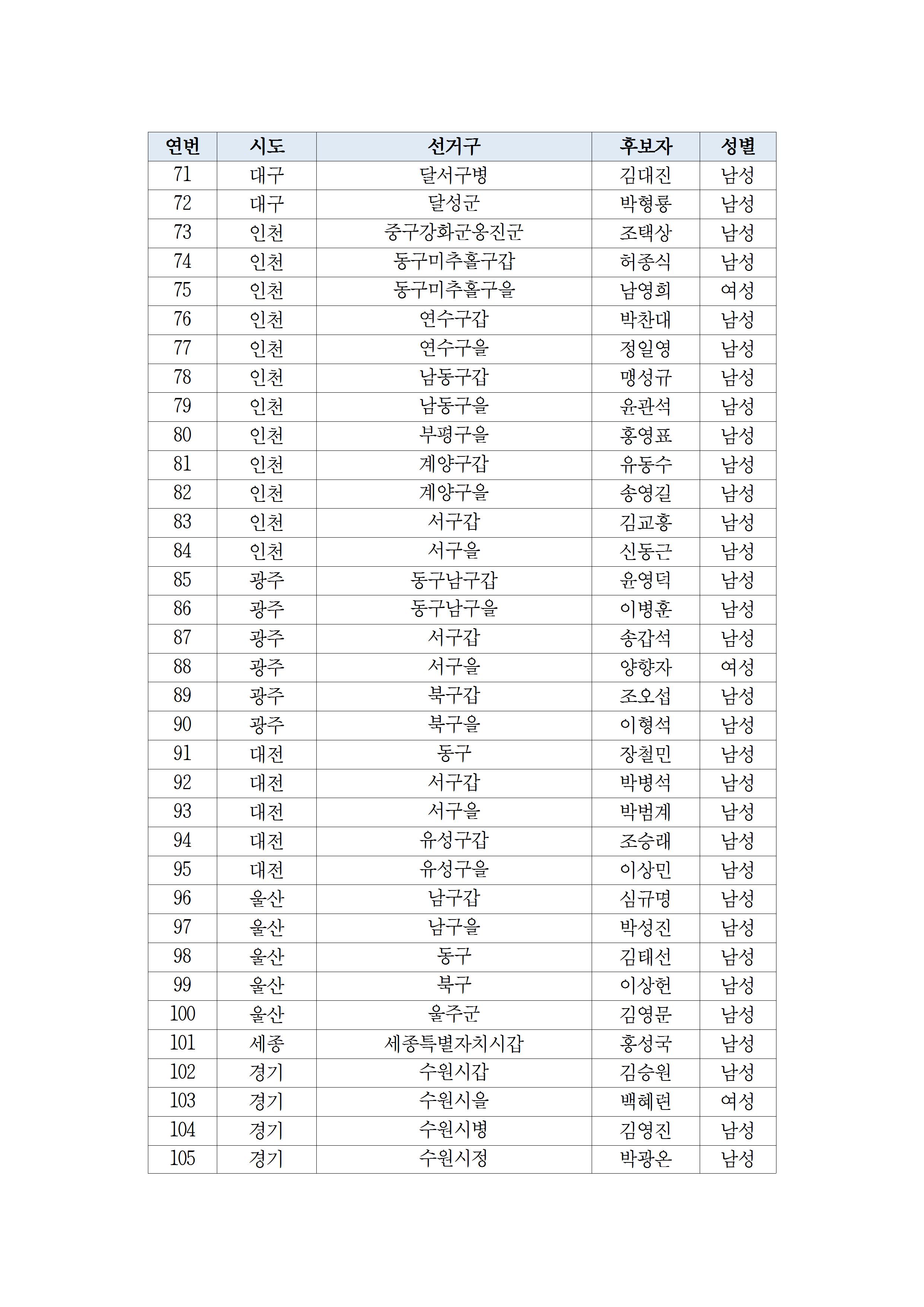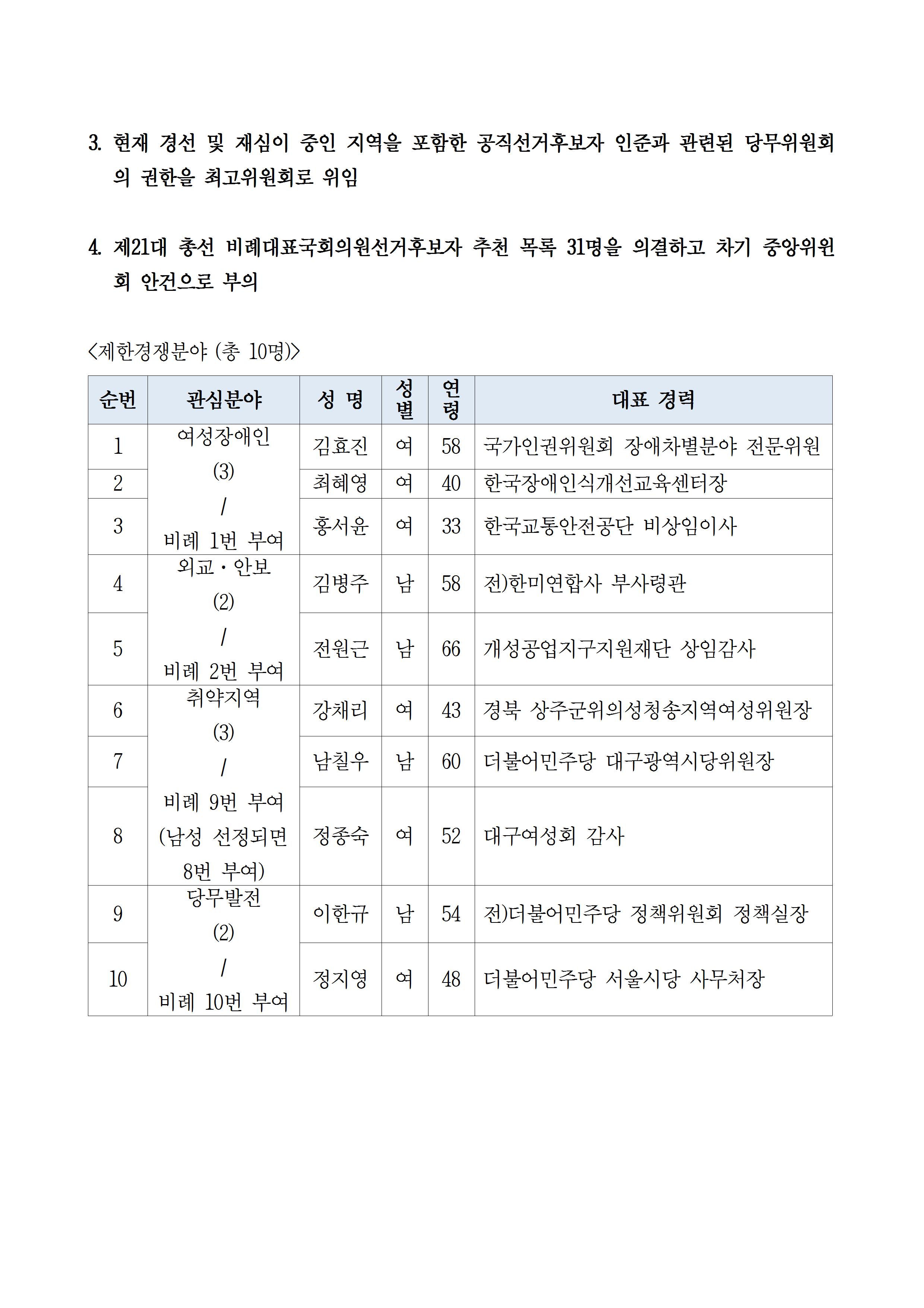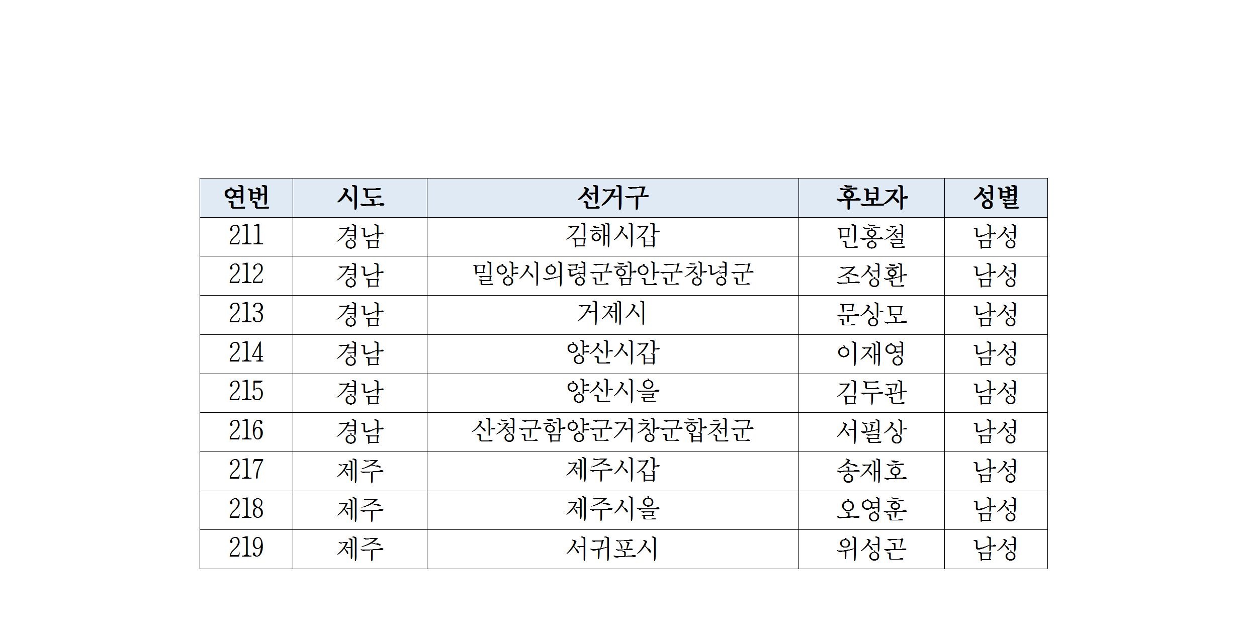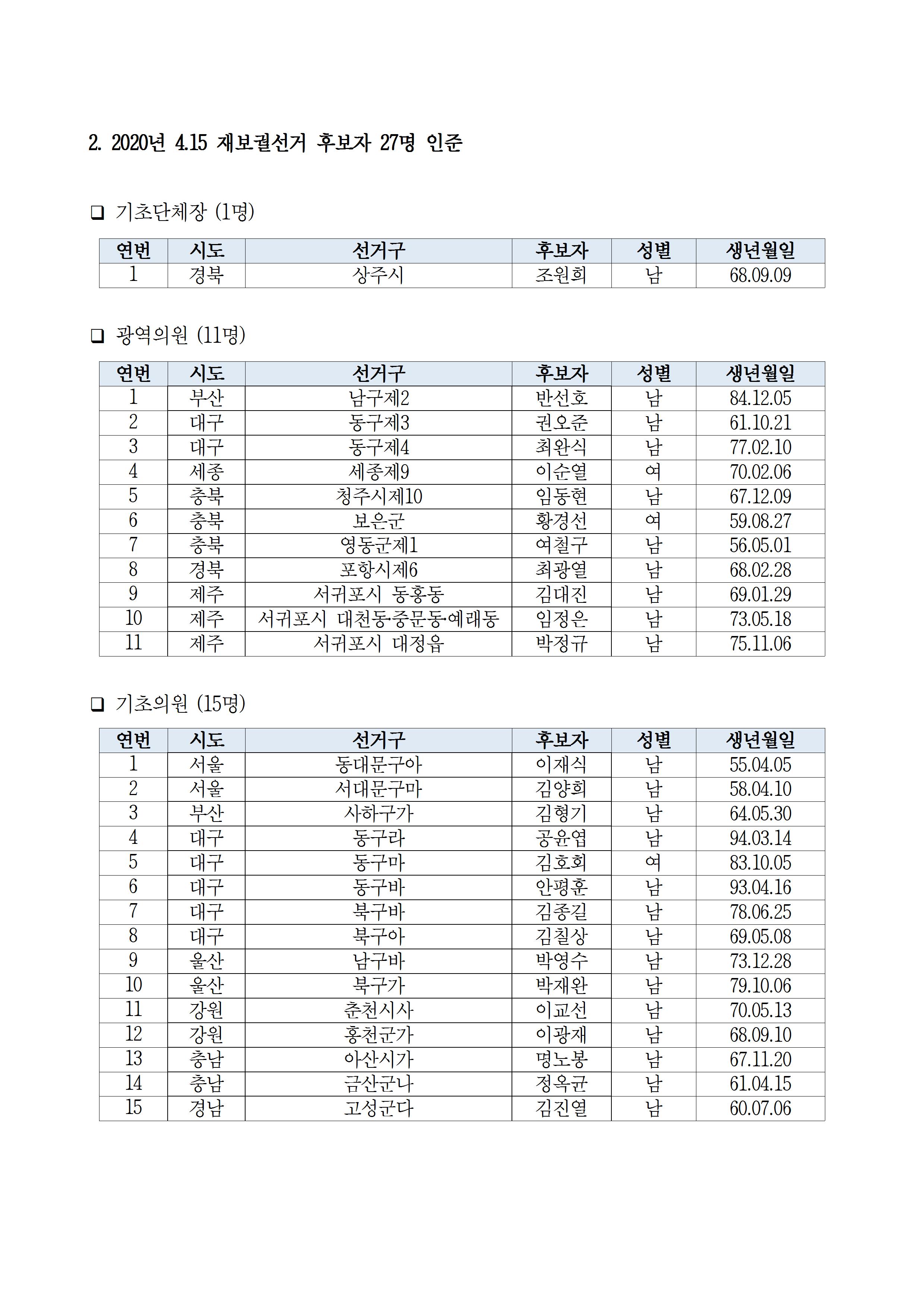 1. 제21대 총선 지역구 국회의원 추천 후보자 219명 인준