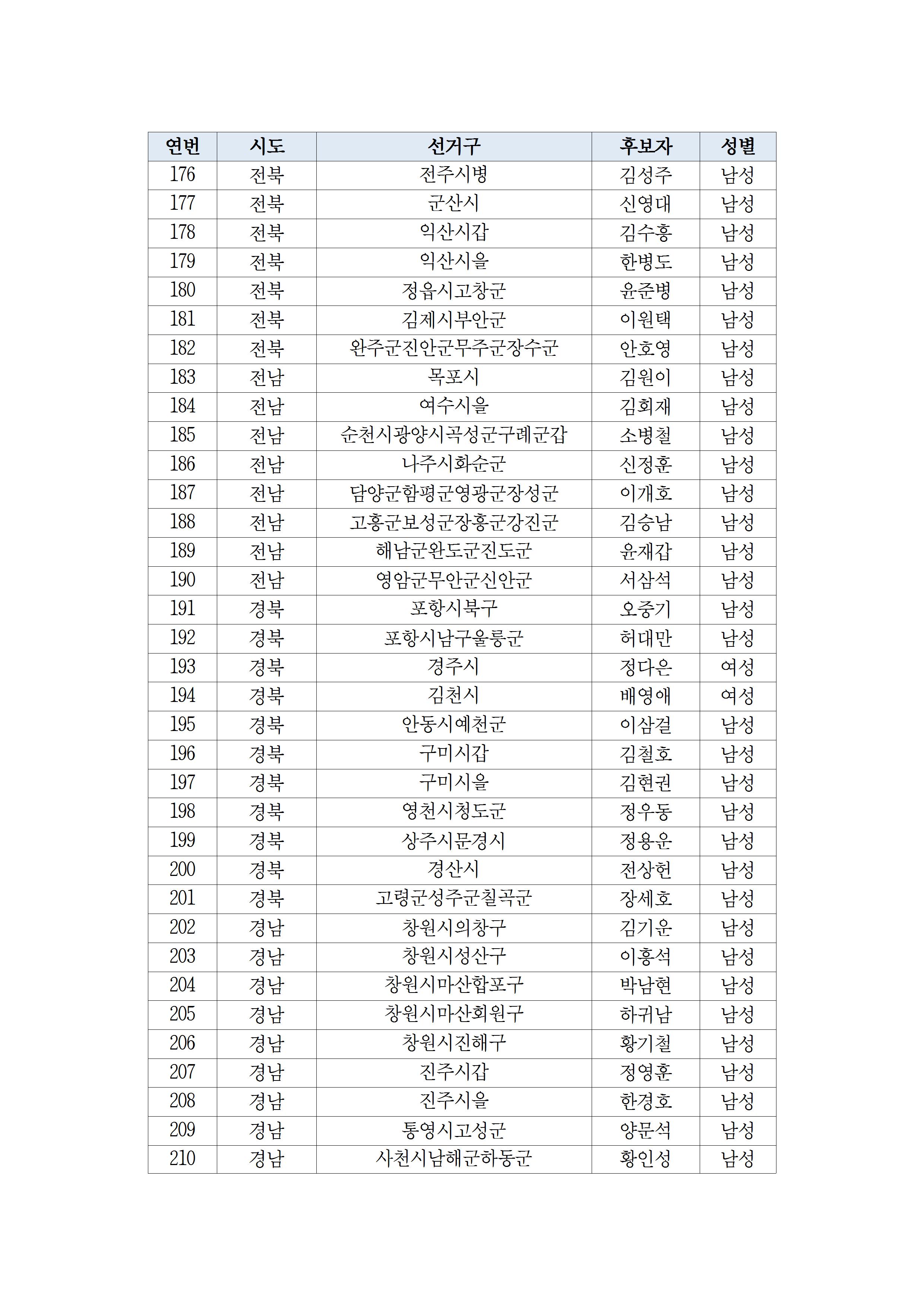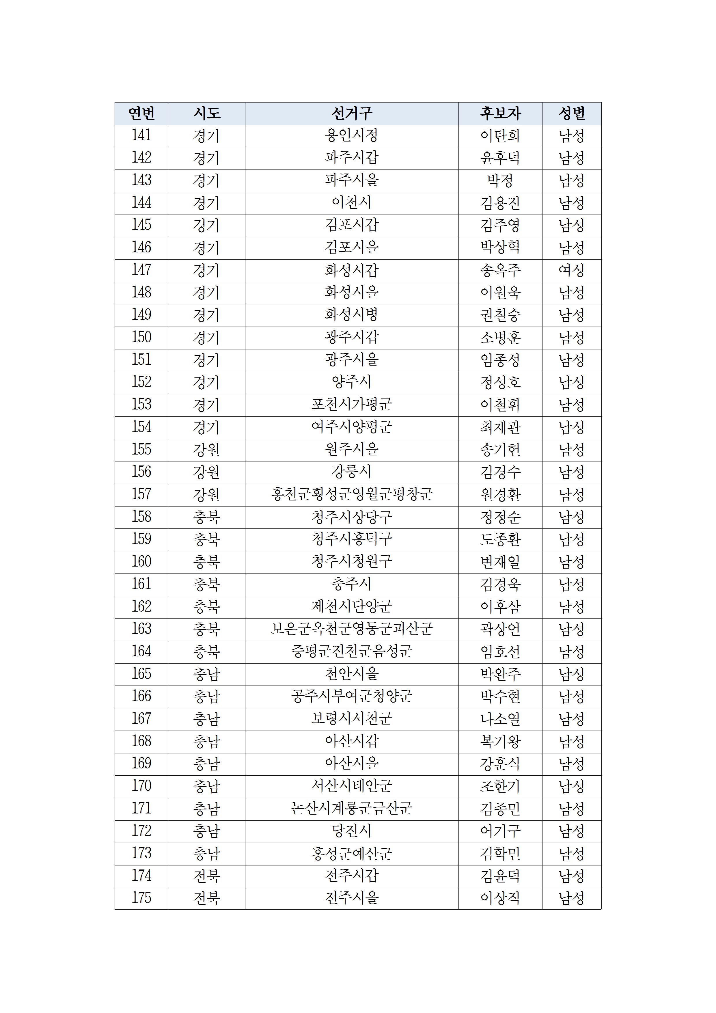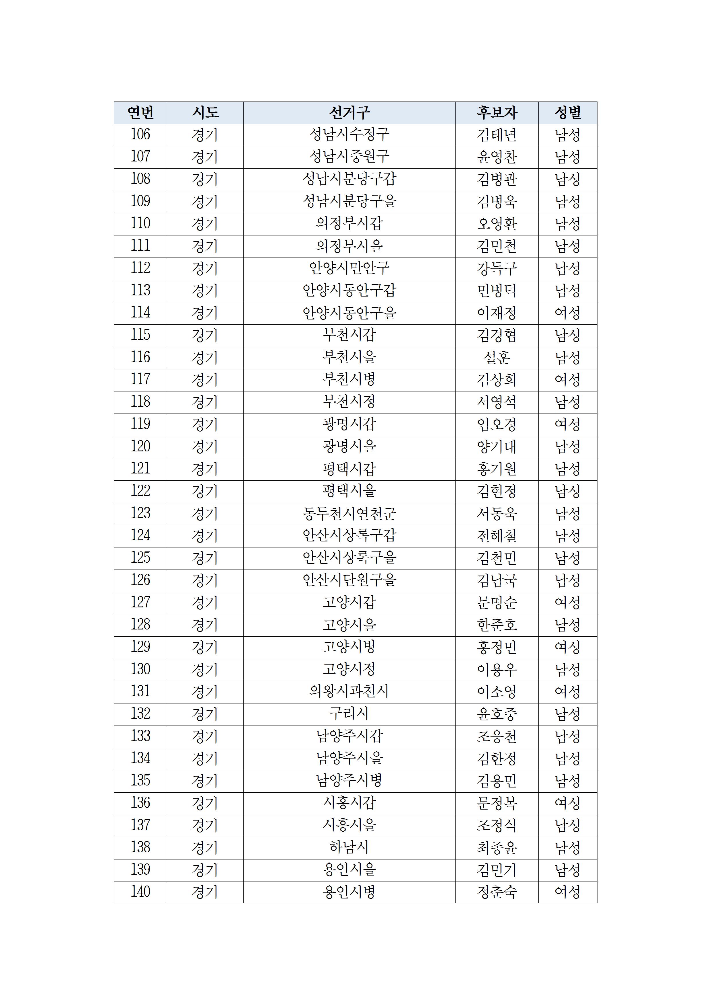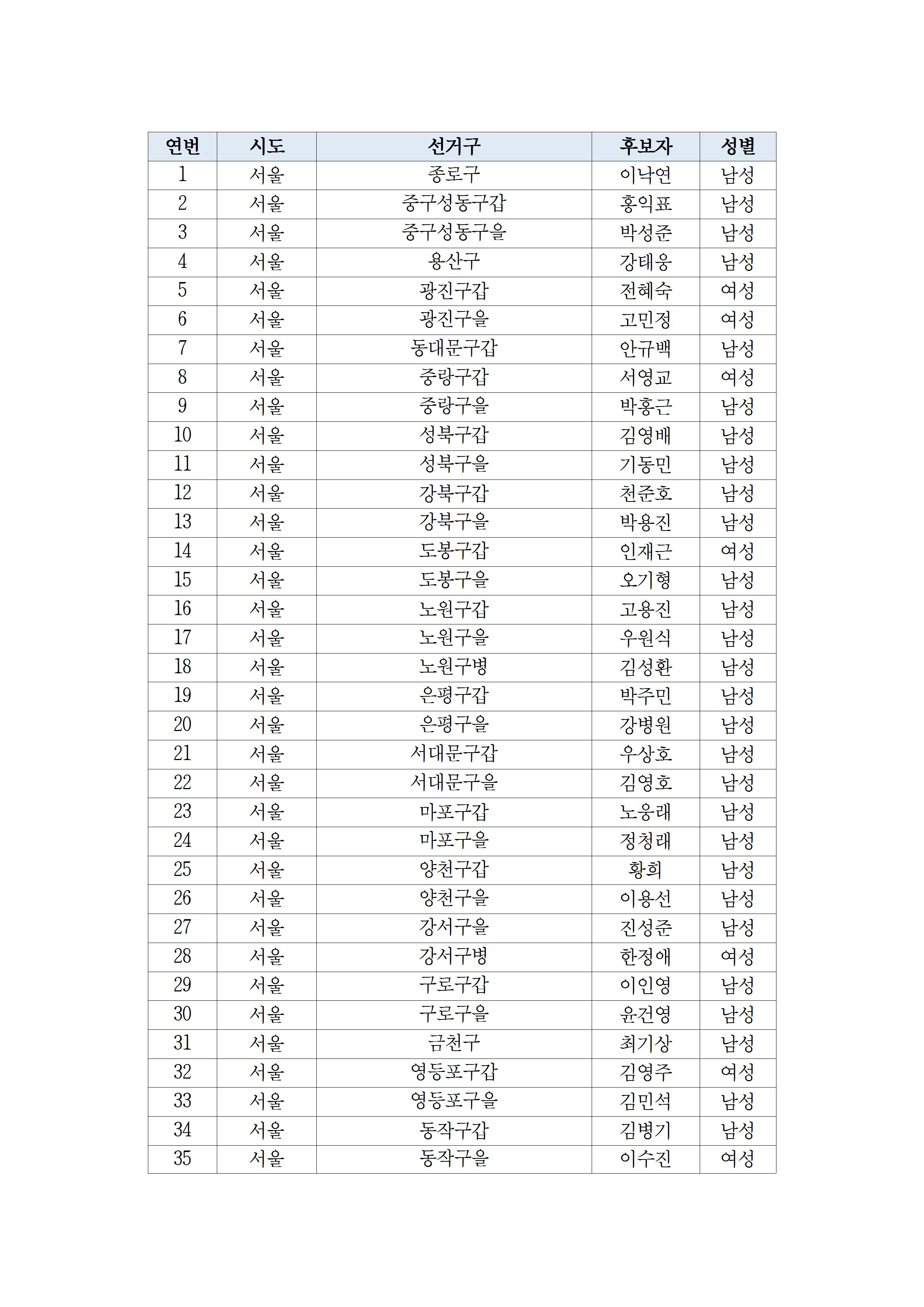 1. 제21대 총선 지역구 국회의원 추천 후보자 219명 인준