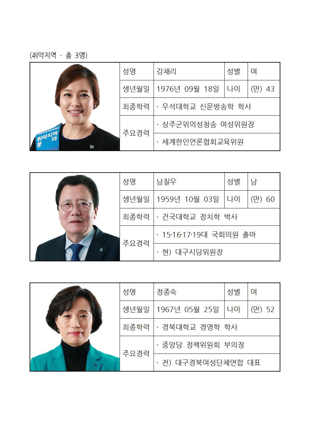 제21대 국회의원선거 지역구 경선 제7차(11곳) 결과 발표