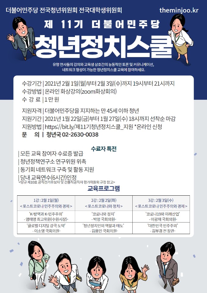 지원방법 : https://bit.ly/제11기청년정치스쿨_지원 *온라인 신청