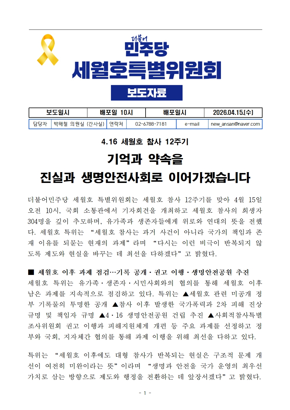 260415_세월호_참사_12주기_기자회견_더불어민주당_세월호_특별위원회_보도자료_v2.hwp