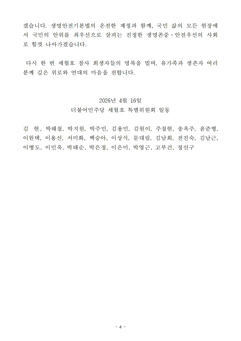 더불어민주당 세월호특별위원회, 4.16 세월호 참사 12주기